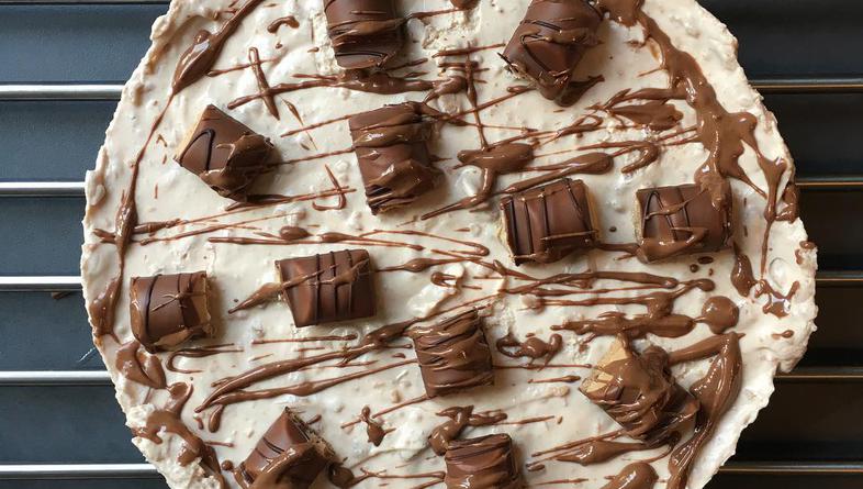 5. Svoj čokoladni cheesecake možeš ukrasiti po želji. Mi ti preporučujemo topljenu ili naribanu čokoladu, šlag i neizostavne kockice Kinder buena.