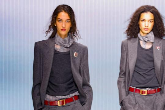 Materijali – svileni baršun, krep, kašmir i koža – grade taktilnu raskoš bez viška dramatike. Koloristička paleta ostaje vjerna kući: siva, bež, bordo, tamnoplava i crna nose temelj kolekcije, dok zemljani tonovi unose diskretan odmak i svježinu.