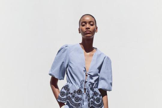 Zaokret prema romantici na modnim je pistama bio vidljiv u kolekcijama velikih modnih kuća poput Chloé, Valentina i Miu Miu, signalizirajući odmak od oštrijih silueta i tamnih paleta proteklih godina, a kad god je koji modni trend u pitanju, dobro je poznato da high street brendovi vrlo vješto i vrlo brzo implementiraju sve što modne piste iznjedre. Na čelu utrke gotovo uvijek je Zara koja je i ovog puta brže bolje ponudu obogatila brojnim beskrajno romantičnim komadima, a među kojima nas je posebno šarmirao neodoljivi plavo-bijeli prugasti komplet.