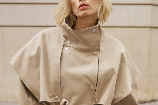 Materijali prate ovu estetiku slojevitosti. Lagani, vodootporni tekstili omogućuju da svi ti elementi – dodatne kragne, volani, dvostruki slojevi – ostanu nosivi i funkcionalni, bez težine i pretjerane teatralnosti. Baloner tako zadržava svoju osnovnu svrhu zaštite od kiše, ali je nadograđuje sofisticiranom igrom volumena i površine.