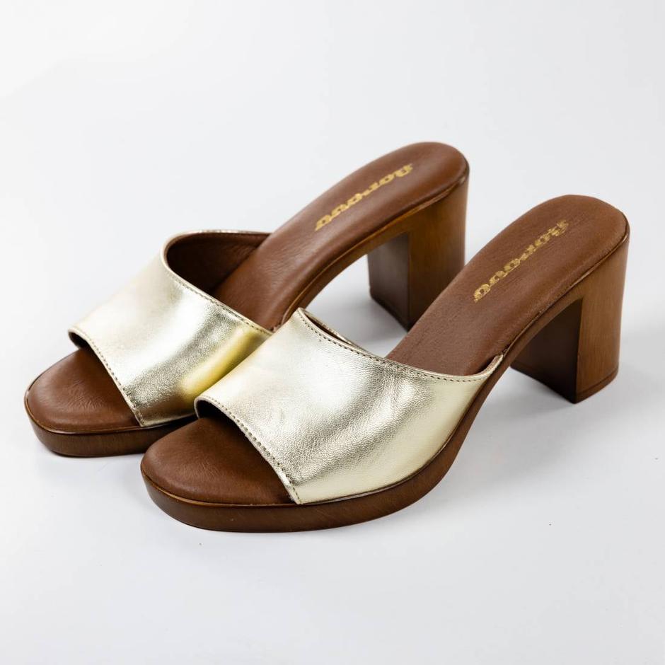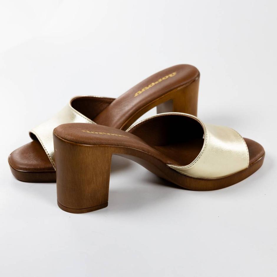 Zbog kombinacije boje tamnog drveta sa širokom zlatnom trakom te blok pete, ove će natikače pristajati i uz kratke i duge ljetne haljine, uz kratke traperice, bermude koje su ove godine ekstra popularne... Zapravo, gotovo sve što već imaš u ormaru.