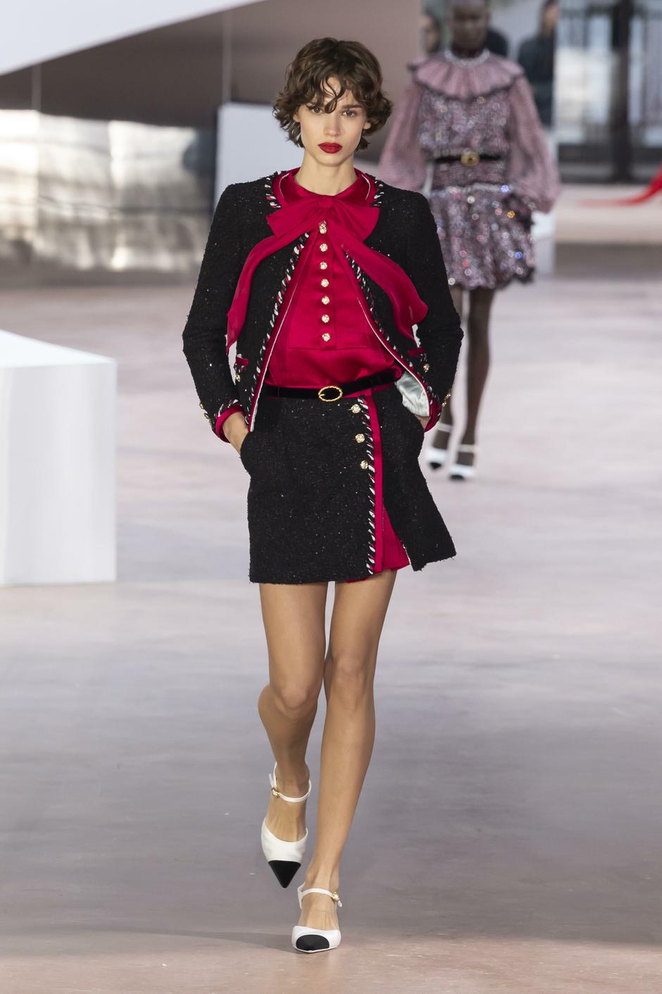 Baš kako i dolikuje Chanelu, sve je obilovalo komadima od tvida - blejzerima, suknjama, haljinama... Ali, dizajneri su se odlučili i malo poigrati pa su, uz tvid strogih linija, u pokoju kreaciju ubacili i lagane, lepršave materijale koji su sasvim promijenili siluetu. U svemu tome, veliku su ulogu imale i bijele cipele s crnim vrhom koje već godinama ne silaze s trona kao jedne od najpopularnijih modela cipela koje su već doživjele i bezbroj high street kopija.