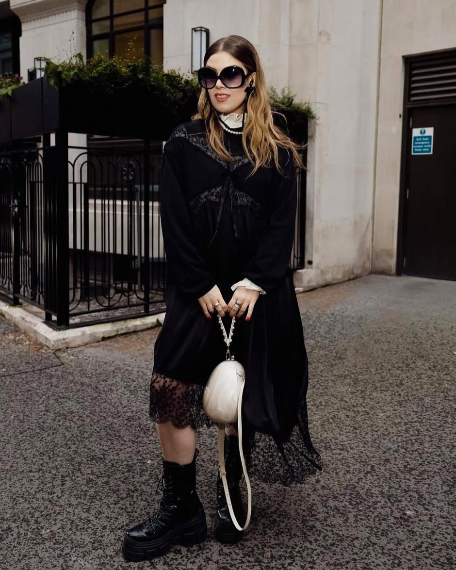 Ključna riječ za stiliziranje čipke u 2025. je – ravnoteža. Za one koji naginju mračnijoj estetici, gotička romantika je pravi put. Kombiniraj crne čipkaste komade unutar potpuno crnog outfita, i igraj se različitim teksturama poput satena, kože i baršuna kako bi stvorila dubinu. Prozirna čipkasta bluza ispod kožnog sakoa ili dugačka suknja uz robusne čizme stvorit će moćan, ali ne i kostimiran izgled.