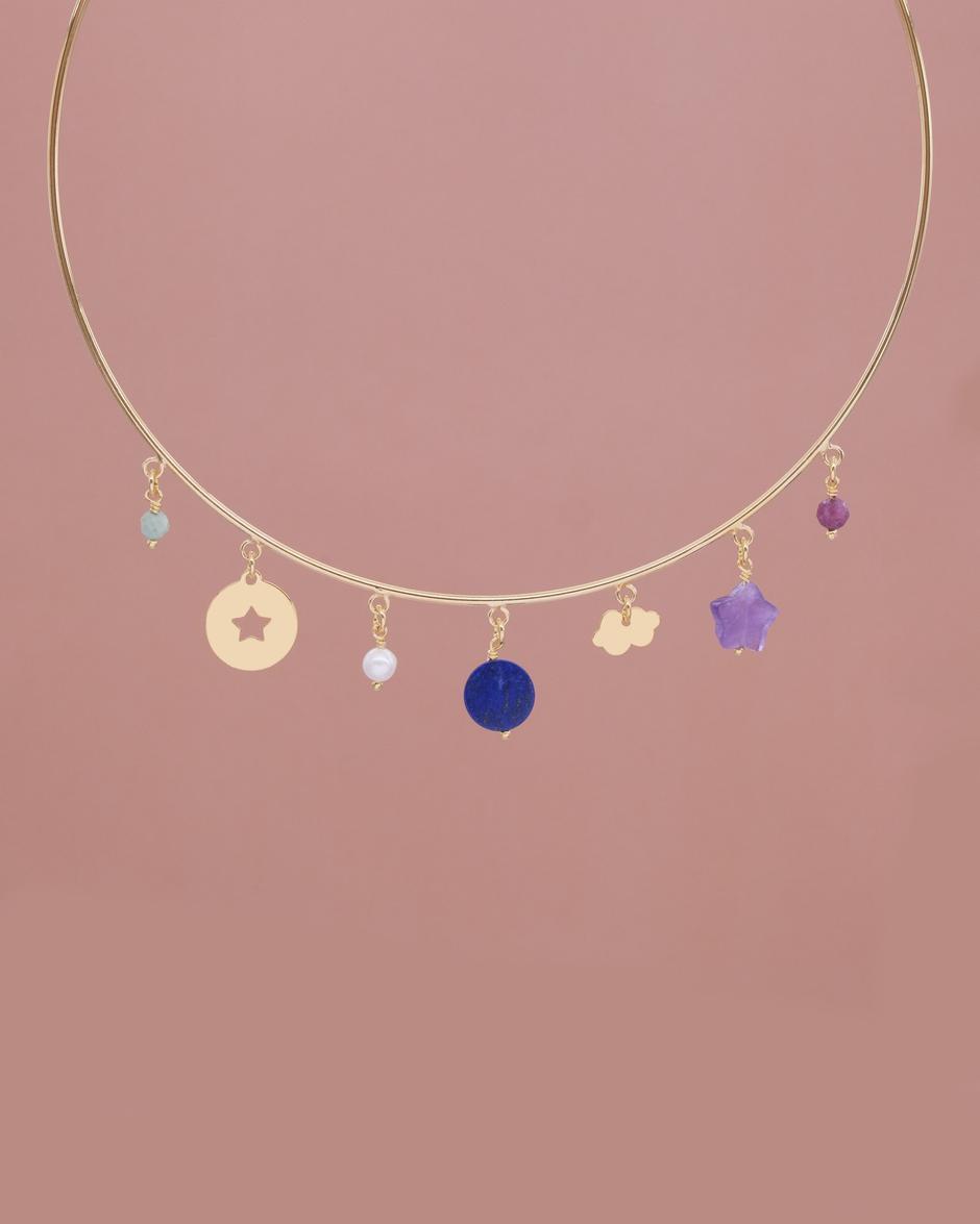 - Kolekcija donosi opuštene lančiće i choker ogrlice u pozlati ili srebru, s karakterističnim motivom oblačića, zvjezdica, mjeseca...