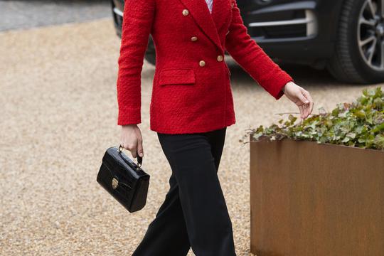 Kate je viđena u svom omiljenom Zara crvenom sakou na raznim događanjima, uključujući posebno obraćanje engleskoj ženskoj ragbi reprezentaciji putem društvenih mreža i tijekom njezinog posjeta Sveučilištu u Kopenhagenu kako bi se upoznala s njihovim Projektom mentalnog zdravlja dojenčadi. Vojvotkinja dosljedno spaja ovaj upečatljivi komad s klasičnim neutralnim kombinacijama, često spajajući crnu i bijelu s odvažnom crvenom bojom blejzera.