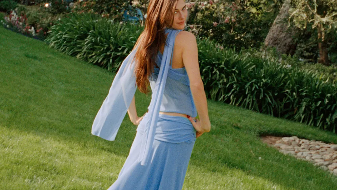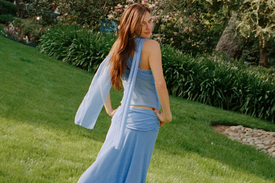 Devin Lee Carlson x Revolution komplet bluze i suknje je na prvi pogled ležerann, ali istovremeno elegantan te profinjen, čemu pridonosi lagani materijal i pastelne boje. Lula bluza ima tanke naramenice, i mogla bi proći kao obična bluza da nema pelpum preko grudi, ali ono što joj daje poseban štih je lagani šal koji se prebaci oko vrata i križa na leđima, te pada niz tijelo. Iako se čini kao sitnica, ovoaj detalj čini veliku razliku. Reformationov Lula top dolazi u brojevima od 30 do 56, a cijena mu je 198 eura.