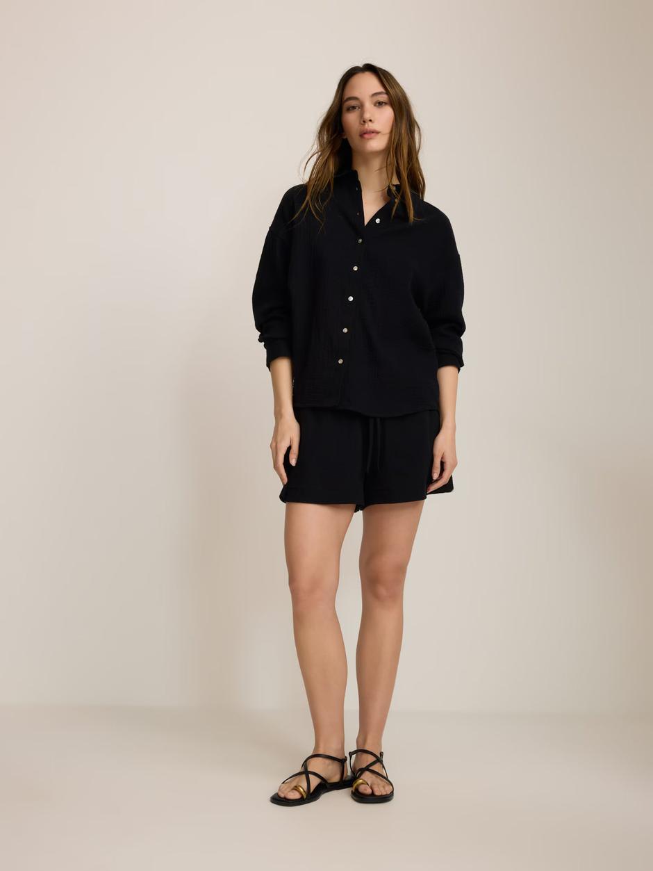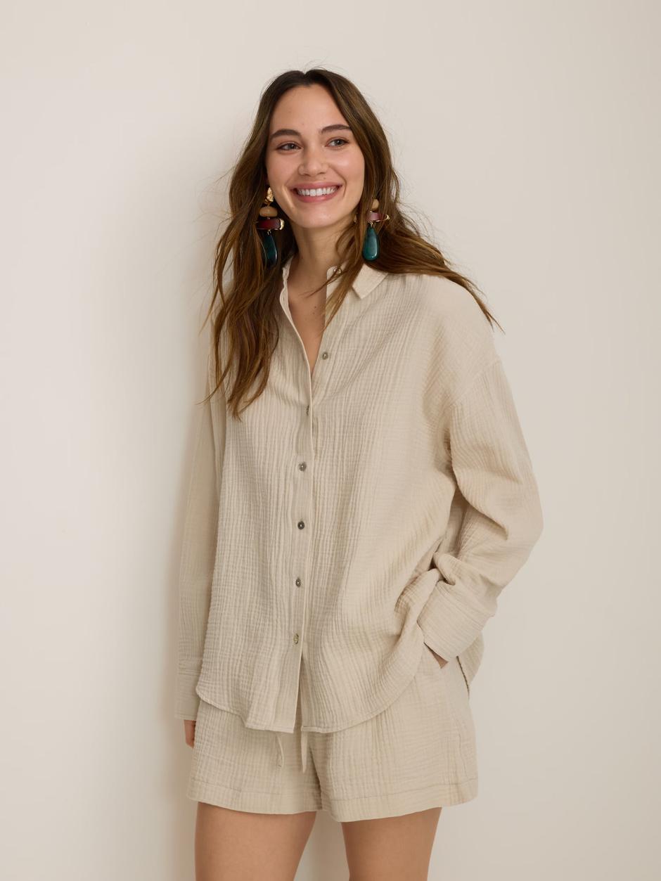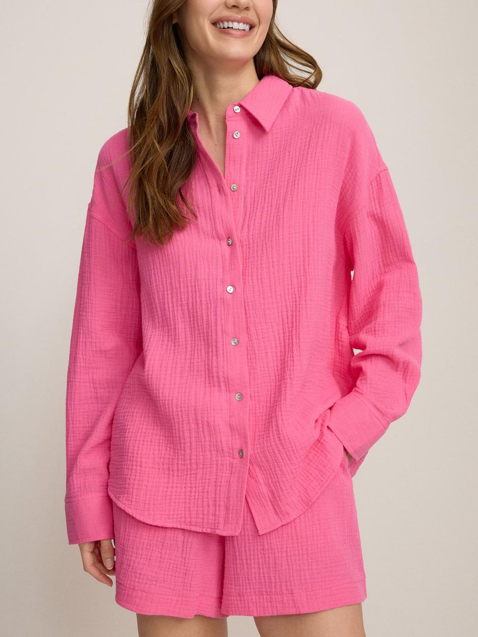 U pitanju je košulja dugih rukava koja je u potpunosti načinjena od prozračnog muslina te je ravnog, blago oversized kroja. Ipak želimo da nas ljeti što manje toga dodiruje... S obzirom na to da je muslin poznat po svojoj teksturi, volimo ga i zbog toga što se uopće ne gužva pa se samim time ne mora niti peglati. Ako se nas pita, bolje od ovoga ne može. No, ipak može - ova košulja dolazi u velikom rasponu boja - njih 11 i u dva super uzorka pa tako na izbor imamo tri nijanse plave, dvije nijanse ružičaste, bež, bijelu, bordo, crvenu, sivu, crnu, te uzorke školjkica i srca na bijelim košuljama.