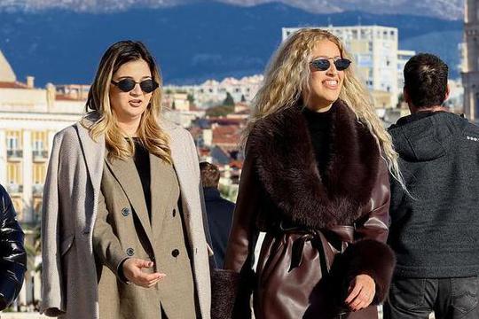 Njezina prijateljica odlučila se za sasvim drugačiji, ali jednako trendy pristup, oversized odijelo u bež nijansi, stilizirano s dugim kaputom preko ramena i klasičnim crnim gležnjačama. Minimalistički izgled, nenametljiv, ali izrazito šik, idealan za svakodnevne obaveze ili poslovni sastanak. Zajedno, ove dvije prijateljice savršeno utjelovljuju ono što najviše volimo kod splitskog stila: ležernu eleganciju, smjelost u odabiru komada i osmijehe na licu koji i najjednostavniji outfit čine posebnim.