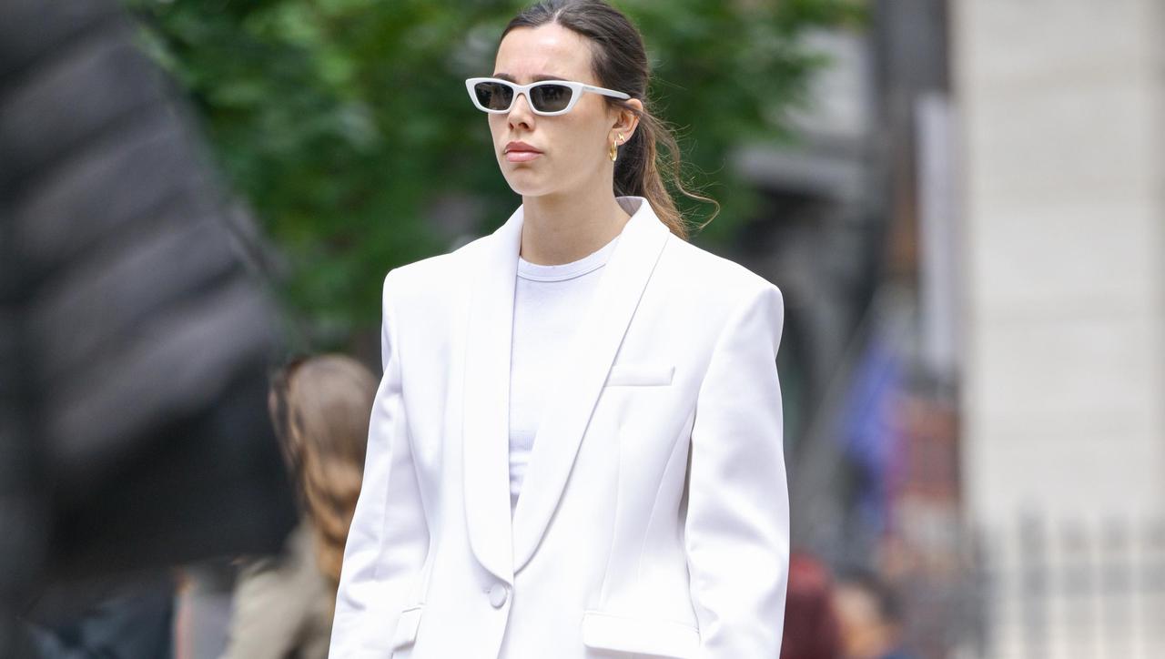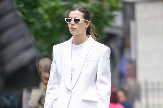 U outfitu ove mlade dame, glavnu riječ vodi bijela boja koja posebno naglašava eleganciju pamučne maksi suknje, pripijene bijele majice i blago oversized blejzera koji, osobito kada je zakopčan, suptilno naglašava struk. Iako je stvarno minimalistički komad, ovaj sako odiše samopouzdanjem i svemu daje posebnu dozu luksuza. No, kako outfit promatramo naniže, tako dolazimo do ležernijih komada - lepršave suknje i niskih Off White tenisica u baby plavoj boji koje su, u paru s torbicom identične boje, napravile izvrstan balans u ovom monokromatskom outfitu.