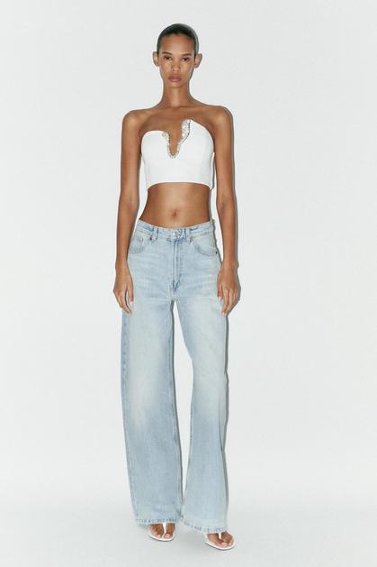 Top bez naramenica na točkice (39,95 eura)