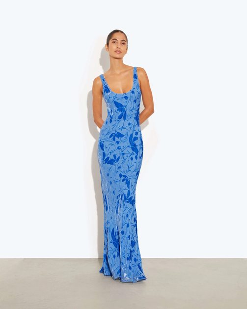 Marisol, svijetlo plava duga haljina s cvijećem (385 eura)