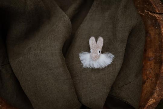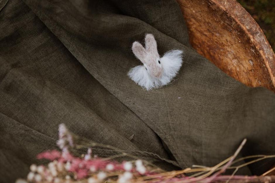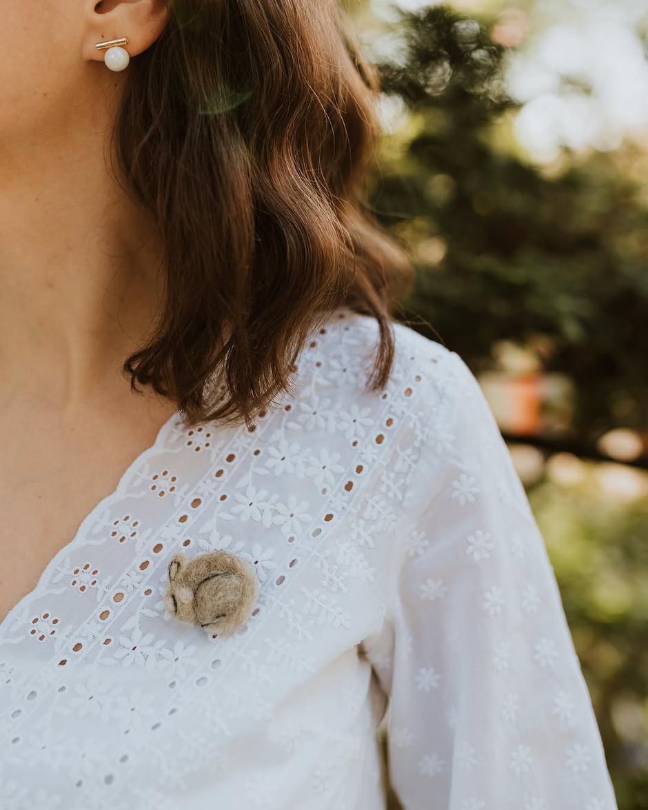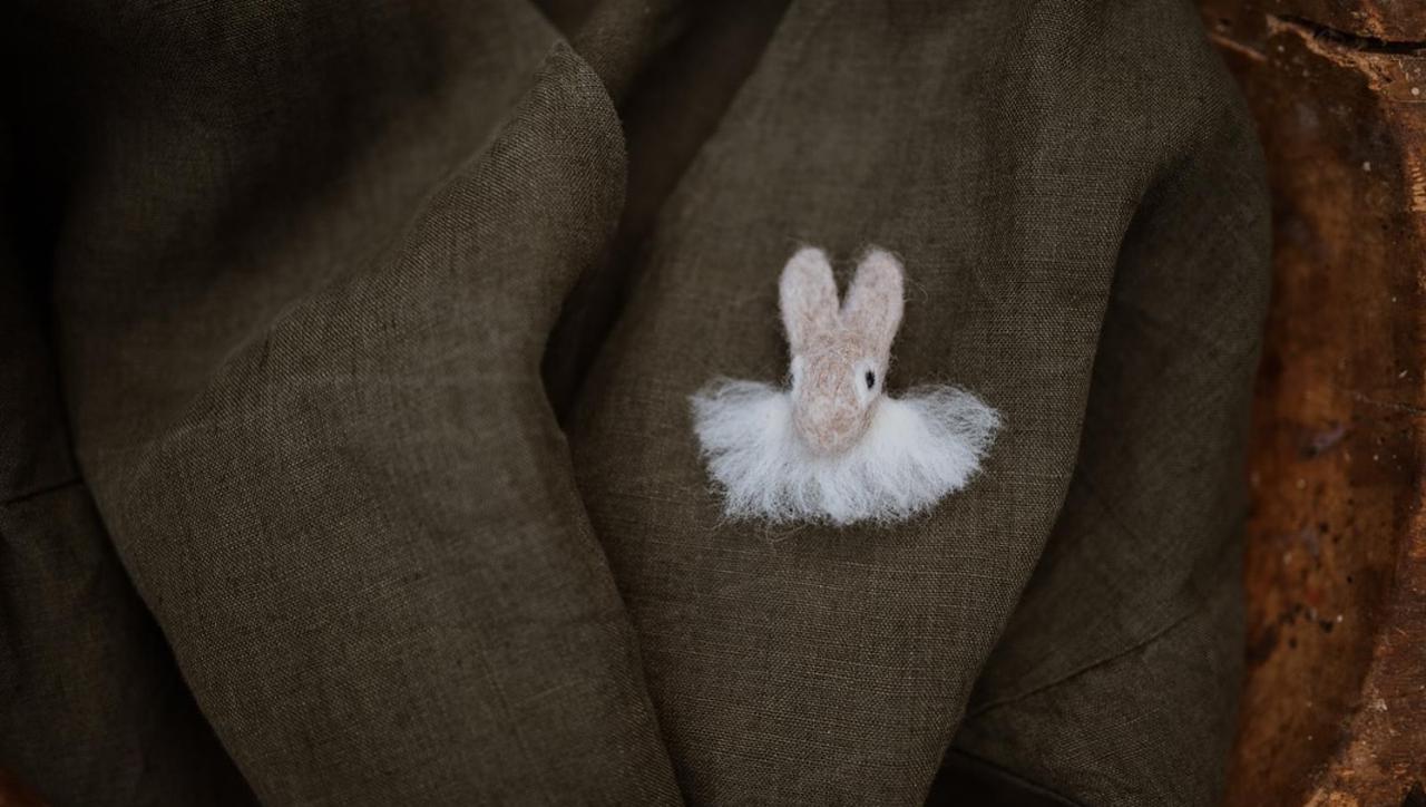 Radeći isključivo s mekanom merino vunom, Ana iglu koristi kao čarobni štapić s kojim, jedan po jedan ubod, stvara pravo malo životinjsko carstvo, pažljivo dodajući najsitnije detalje zbog kojih će se u svaki od njezinih broševa svatko zaljubiti na prvi pogled. Trenutno u tom bajkovitom vunenom svijetu obitava vesela družina koju bismo rado dodali u svoju kolekciju: našao se tu jedan simpatični gospon zec s ozbiljnim stavom i toplim očima, pa zatim jedan graciozni labud, razigrana pčela spremna za proljetnu avanturu, gusak koji izgleda kao da modu ima u malom prstu, nježna ptičica u letu i jedan bucmasti medo koji se očito previše zasladio medom.