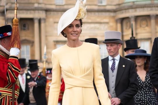 - Kate Middleton zablistala je na vrtnoj zabavi u Buckinghamskoj palači u elegantnoj haljini boje maslaca dizajnerice Emilie Wickstead
