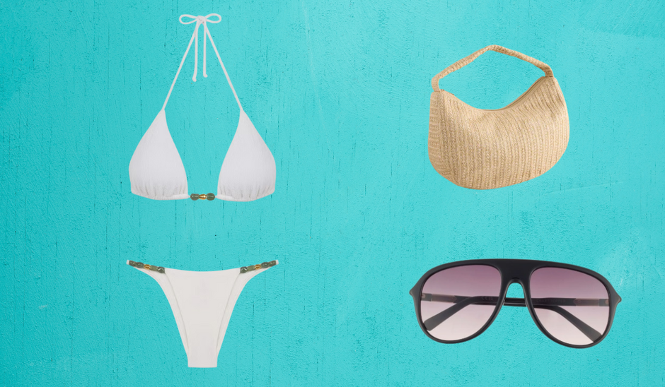 Canva/ ViX Paula Hermanny kupaći kostim ( gornji dio 129 eura, donji dio 138 eura), Next torba (46 eura, Quay sunčane naočale (83,26 eura)