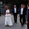 Za prijem u Alkarskim dvorima, održan neposredno prije odluke o odgodi, prva je dama odabrala odvažan i vizualno dojmljiv stajling. Pojavila se u elegantnoj kombinaciji vatrene crvene boje koja se sastojala od hlača širokih nogavica i unikatno dizajniranog gornjeg dijela. Top asimetričnog kroja isticao se preklopom oko vrata i efektnim rukavima s elegantnim naborima, a kontrastni bijeli porub i remen u istoj boji koji je naglasio struk savršeno je nadopunio cjelokupni izgled. Stajling je zaokružila elegantnim bijelim šeširom širokog oboda, modnim dodatkom koji je postao njezin zaštitni znak na ljetnim događanjima.