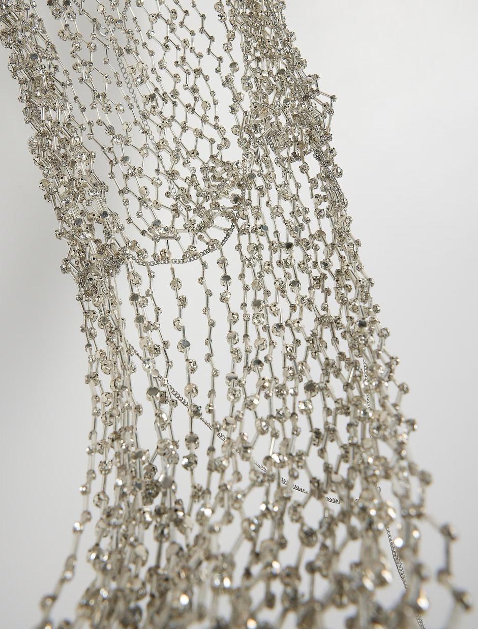 Da, ovo zaista nije komad koji bismo nosile za svaki dan, ali je dovoljno odvažan i fora da ga možemo zamisliti na ljetnim zabavama do jutra. Reserved top s perlicama dolazi u srebrnoj/metalik boji, a veže se oko vrata te na gornjem dijelu izgleda kao klasični top golih leđa, osim što je izrađen od 60% stakla, 30% mjedi i 10% željeza i malo je reći da je proziran - zapravo ga nema!