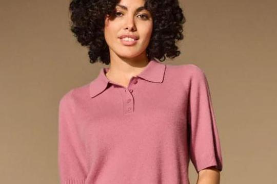 U pitanju je pulover od tankog, laganog kašmira koji je i dalje mekan i udoban, ali se od tipičnih džempera razlikuje po kratkim rukavima koji sežu do lakta. Rukavi su na ramenu blago nabrani te po sredini imaju vertikalni šav i rebrasti porub što puloveru daje suptilnu dinamiku. Tu su još i gumbići u istoj boji kao i džemper koji se mogu zakopčati sve do profinjene polo kragne.