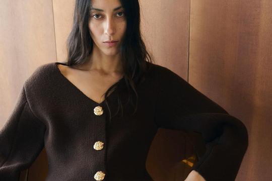 Naglašeni struk pretvara vestu u komad koji oblikuje figuru te time fino briše granicu između ležernog pletiva i profinjenog gornjeg dijela. Takav kardigan postaje nosivi statement koji samostalno gradi styling, od njega priča počinje. Posebnu ulogu u toj transformaciji ima smeđa boja, jedna od ključnih nijansi sezone. Topla, duboka i elegantna, smeđa unosi osjećaj luksuza i lako se uklapa u dnevne i večernje kombinacije. U pletivu djeluje sofisticirano, a istovremeno zadržava dozu ugode i nosivosti.