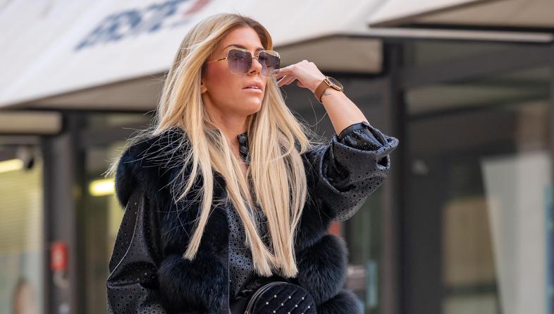Cjelokupni look su upotpunila dva jednostavna detalja - crna torbica preko ramena sa srebrnim detaljima i sunčane naočale s predimenzioniranim okvirima. Detalji na torbici su važni jer tobica s perlama se u ovom modernom total black looku posebno istaknula.