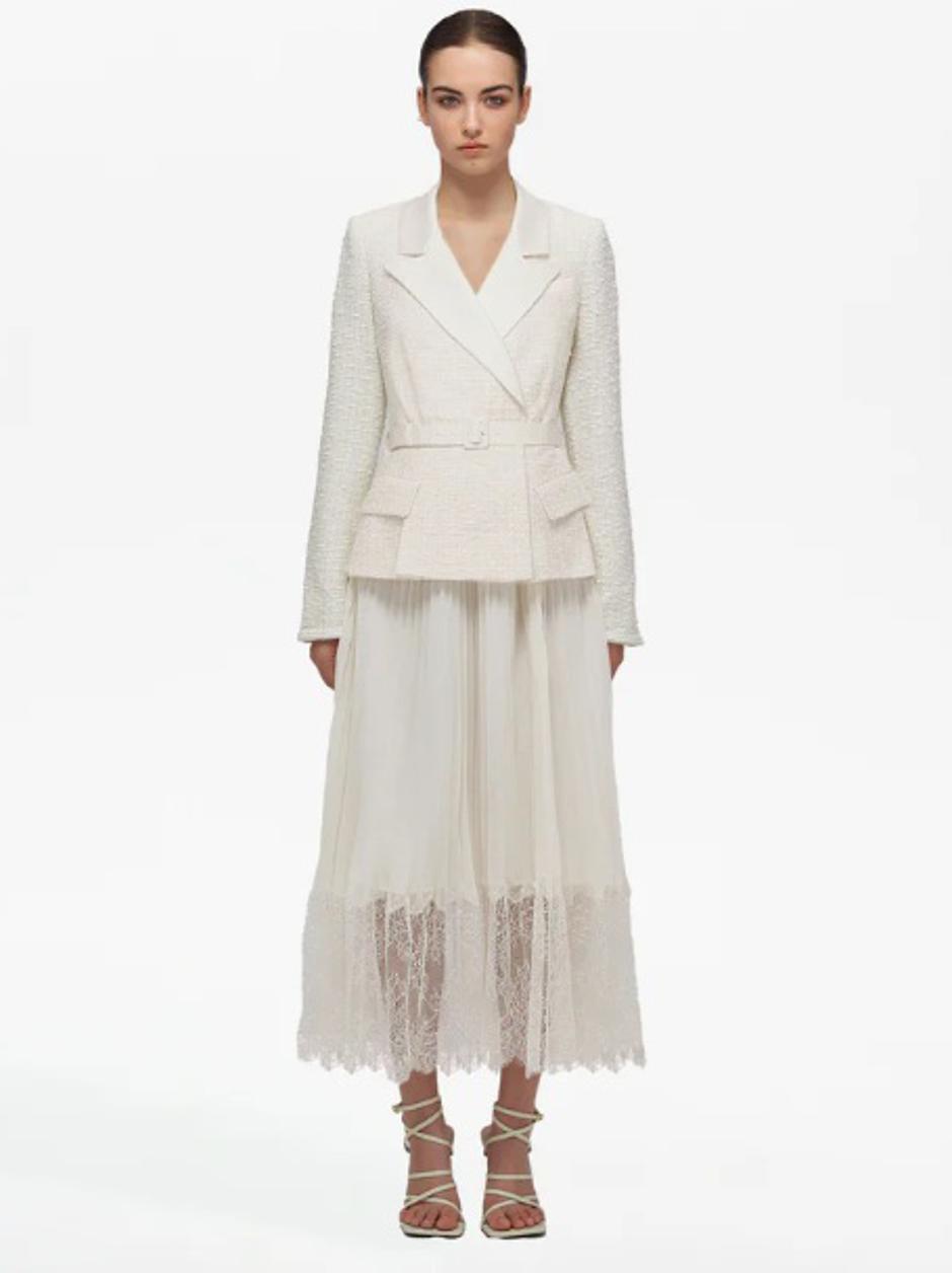 - Za svečani koncert nosila je elegantnu sako-haljinu brenda Self-Portrait, upotpunjenu luksuznim dodacima poput biserne ogrlice i Chanel torbice