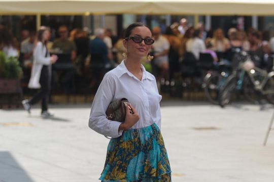 Najveći statement komad u ovom stylingu bila je maksi suknja iz Zarine proljetne kolekcije - plava, s izraženom teksturom i fluidnim krojem, koja unosi dozu igre i odmah vraća misli na ljeto, more i tople dane. Upravo taj kontrast – opuštena bijela košulja i vibrantna, razigrana suknja, daje outfitu posebnu energiju. Detalji su, naravno, ono što čini razliku. Uz ovu kombinaciju odabrala je zlatne viseće naušnice koje unose dašak elegancije, sunčane naočale oblom obliku koje cijelom looku daju dozu retro šarma, te klasičnu Gucci torbicu kao luksuzni naglasak. Cijelu kombinaciju 'smirila' je s bijelim tenisicama, koje unose casual prizvuk i čine styling praktičnim za laganu subotnju šetnju gradom.