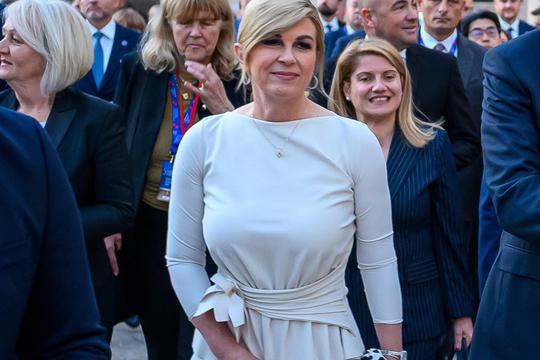 Na samitu Inicijative triju mora (3SI) u Dubrovniku, bivša predsjednica RH Kolinda Grabar-Kitarović ponudila je čitanje aktualnih trendova kroz strogo definirane okvire poslovnog odijevanja. U fokusu su se našla dva jasno prepoznatljiva elementa sezone – off-white monokromija i povratak točkastog uzorka – interpretirani na način koji ostaje odmjeren i funkcionalan.