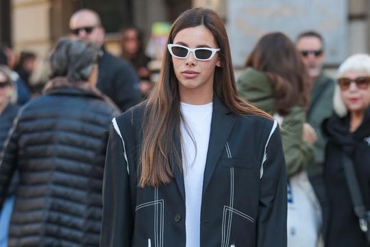 Zarin oversized crni sako s bijelim kontrastnim šavovima pravi je mamac za poglede - kroj je predimenzioniran, ramena su naglašena, a detalji djeluju kao da su precrtani rukom dizajnera, što cijelom looku daje artsy moment. Ispod njega je odjenula bijelu majicu, jednostavnu i također oversized kroja, kojom je razbija tamu i unijela dašak ležernosti.
