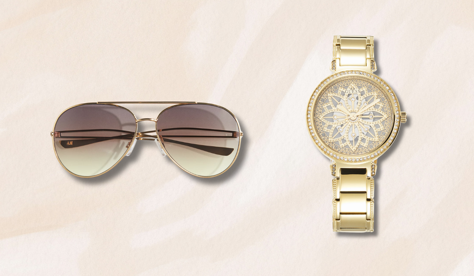 Sunčane naočale: H&M (14,99 eura), Sat: Zalando/Guess (217,35 eura)
