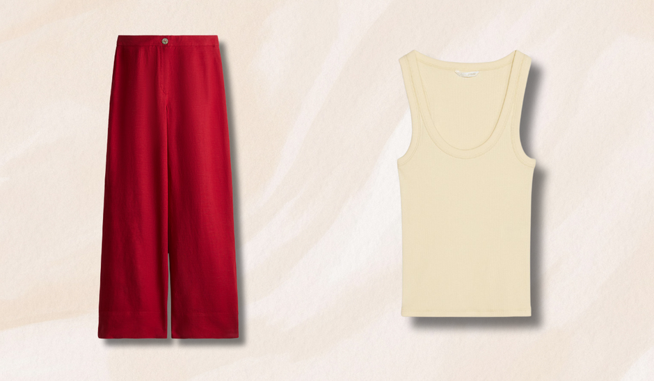 Crvene hlače: H&M (29,99 eura), Bež top bez rukava: Zara (6,95 eura)
