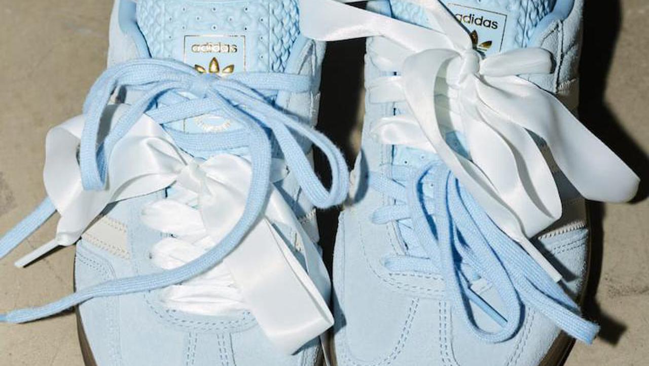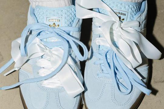 U pitanju su adidas Gazelle tenisice koje dolaze u jednoj od najpoželjnijih proljetno-ljetnih boja - baby plavoj koja je upotpunjena crtama u vrlo svijetloj sivoj koja izgleda gotovo pa bijelo. Ono što ih čini posebnima je jezik neobične teksture (na drugim Gazellama je obično od brušene kože), a veliku dozu romantike daje im kombinacija klasičnih vezica, također u baby plavoj boji, i bijele svilene trake koja se potom veže u romantične mašne. Jako slatko!