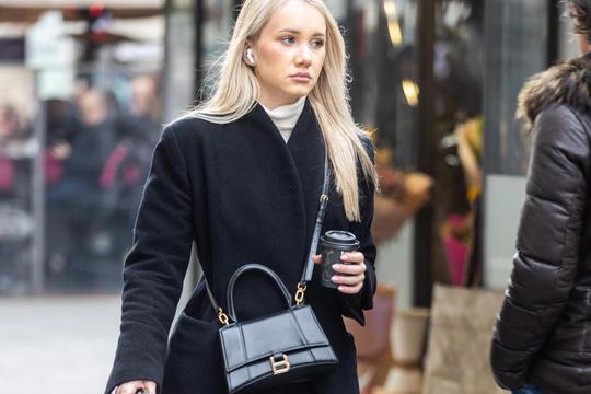 Dokoljenke su ovdje odigrale ključnu ulogu: vizualno su razigrale noge, razbile jednoličnost i cijelom looku dale pomalo retro, ali i vrlo suvremen štih. U kombinaciji s klasičnim lakiranim tamnosmeđim mokasinama stvorile su zanimljiv kontrast između klasičnog i trendi, mikro hlačice dodatno su naglasile efekt slojevitosti, a priča je zaokružena elegantnom Balenciaga Hourglass crnom torbicom.