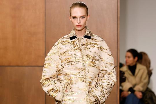 U Calvin Klein Collection Veronica Leoni razvija vlastitu verziju američkog minimalizma: nakon povratka strogoći, sada uvodi hedonizam. Gola leđa, tanki kožni baloneri, raskošne teksture optočene zlatnim "dukatima" i monumentalni shearling ovratnici stvaraju dinamiku između kontrole i izloženosti.