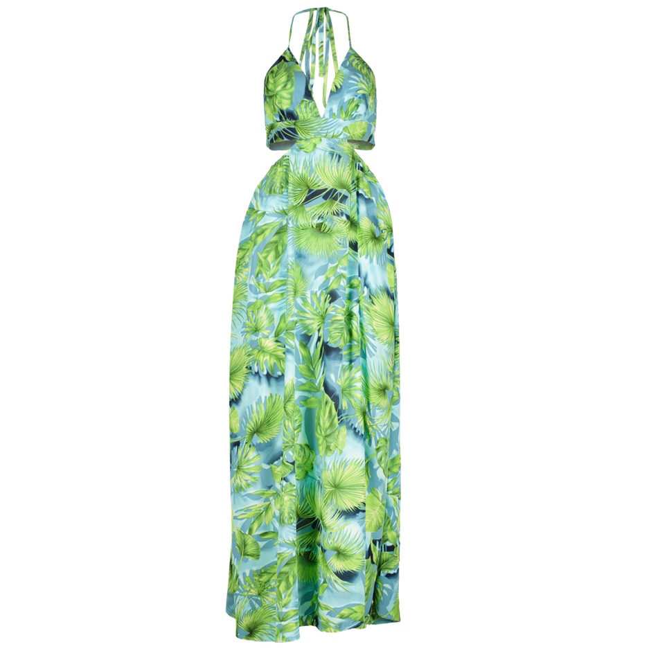 Versace haljina poznata je po svom plavo zelenom dizajnu s palmama i velikim izrezima. Iako New Yorker haljina nije jednaka kao ovaj model kada su u pitanju izrezi, ima jednak uzorak. Haljina je plave boje s mnogo zelenih listova palmi i raznih stabala. Također, baš kao i originalan model, New Yorker haljina je duga do poda te ima veliki V izrez na prsima, kao i izreze sa strane rebara. Haljina se veže oko vrata i pravi je ljetni model.