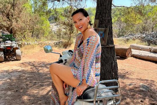 Pamela Badžek odlučila se za nešto kraći Missoni komad - asimetričnu mini haljinu na jedno rame koju krasi jedan dugi, lepršavi rukav. I Pamela je ostatak outfita odlučila ostaviti sasvim jednostavnim. Uz ovu haljinu nosi samo male zlatne naušnice, sunčane naočale i zlatne Havaianas japanke. Ako se nas pita, ovo je savršeni ljetni outfit.