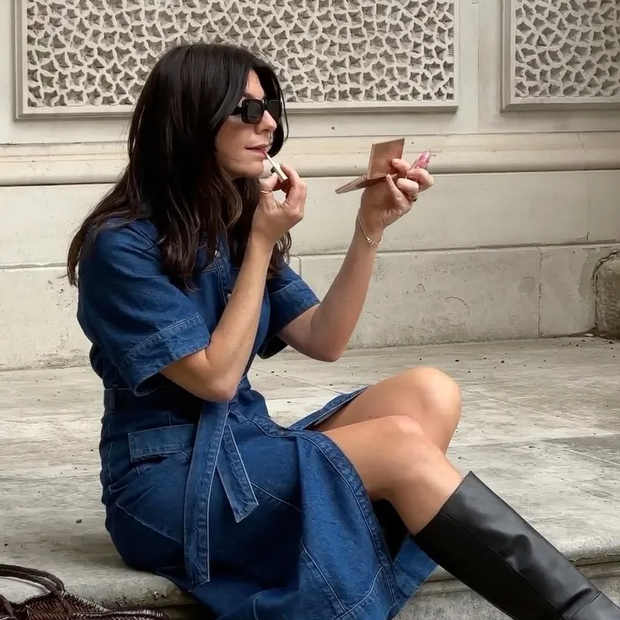 Crveni lak za nokte, crna mala torbica sa zlatnim detaljima i naušnice u istom tonu, kosa lagano prošarana kojim uvojkom i jednostavan make up koji se sastojao od blago našminkanih usana i zaokruženih očiju, bili su savršeni dodaci ovoj elegantnoj kombinaciji.