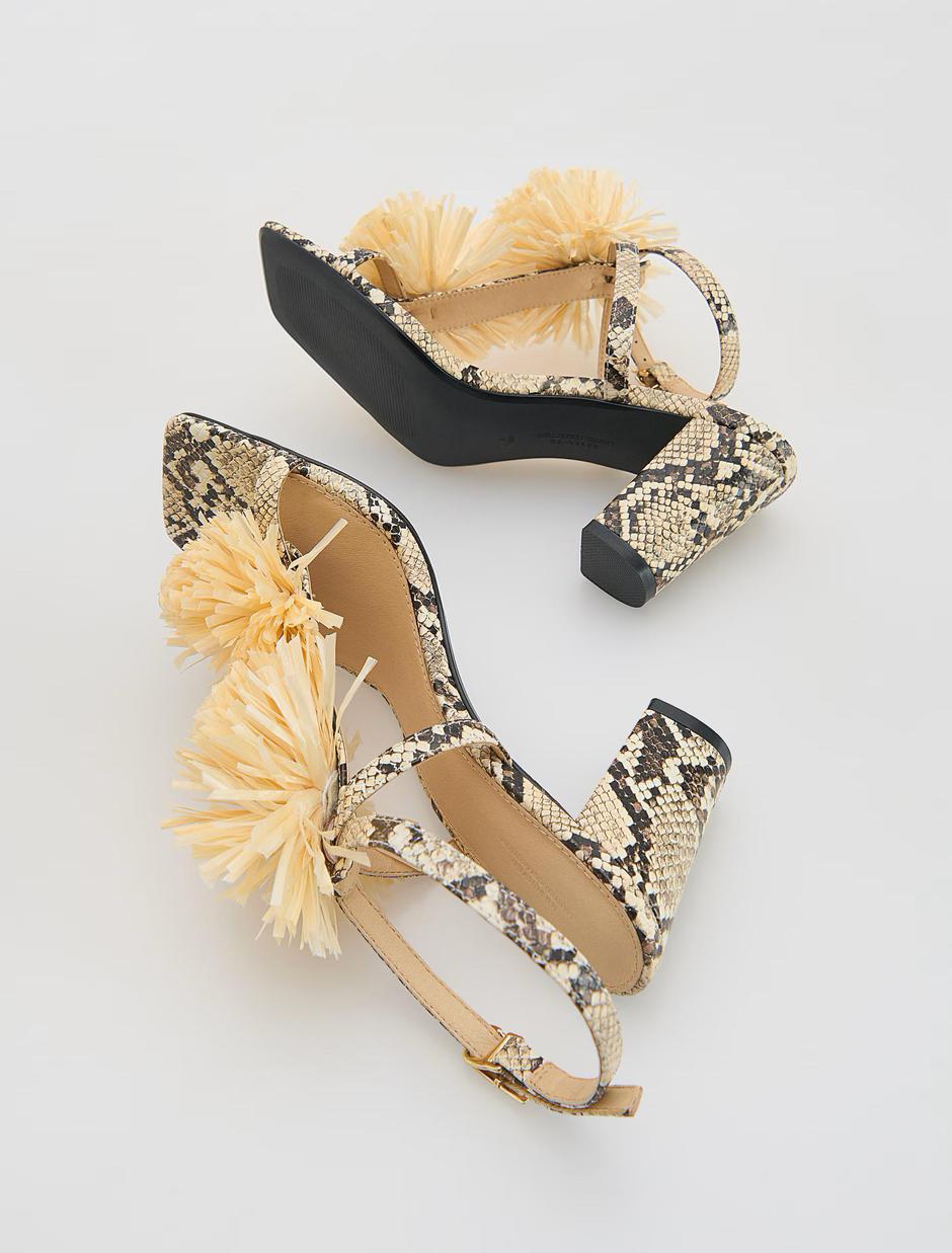 Prvo, njihov dizajn je totalno eye-catching: ukrasni pomponi su savršeno odmjereni da daju razigran i svjež izgled, a zmijski uzorak unosi sekespil i zabavni su detalj. Sve češće viđamo zmijski uzorak na raznim komadima, tako da mu predviđamo sjajnu budućnost u narednim mjesecima. Ipak, na ovim Reserved sandalama, zmijski uzorak je nešto suptilniji, s obzirom na to da pomponi privlače pažnju pa će se svidjeti i onim djevojkama kojima isti nije nužno prvi izbor.