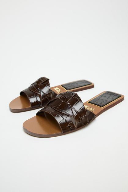 Ravne sandale od brušene kože s metalnim detaljem (39,95 eura)