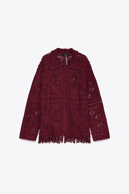 Pleteni kardigan s pomponima i resama (99,95 eura)