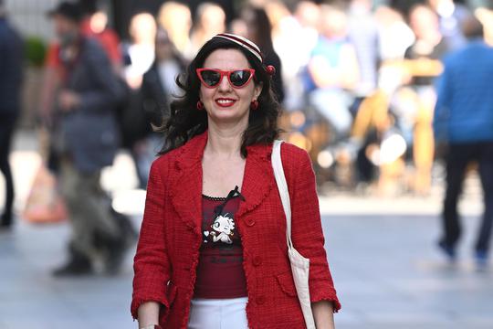 - Njezin besprijekoran osjećaj za detalje vidljiv je u pažljivo odabranim modnim dodacima - mačkastim naočalama, rukavicama boje vina i vintage torbici, dok su crvene mary jane cipele bile prava retro poslastica
