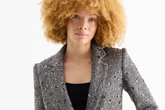 Ovaj C&A sako od buklea posut suptilno raspoređenim šljokicama pravi je mali dragulj i onaj komad koji odmah podigne cijeli outfit. Na prvu djeluje klasično, ali čim ga malo bolje pogledamo, odmah nam se svidi miks teksture, sjaja i profinjenosti koji ga čini posebnim. Bukle mu daje onaj francuski chic, dok diskretne šljokice stvaraju sasvim dovoljan dojam glamura pa je idealan komad za blagdansku sezonu pred nama.