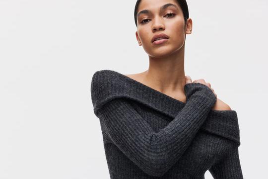 H&M Siva haljina golih ramena od rebrastog pletiva (29,99 eura)