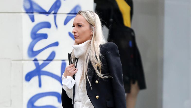 Po bojama, outfit ove plavokose prolaznice gotovo da je mornarski, posebno na njega asocira sako s dvostrukim kopčanjem - dva reda zlatne dugmadi. No nije vrijeme da se zaputimo na more... Hladni jedenski dani su stigli pa je i ona ispod sakoa odjenula udoban i debeo bijeli džemper s velikom kragnom - toplo nam je čim ga vidimo. Kombinirala ga je s također svijetlim, ali ne sasvim bijelim cropanim hlačama, a na nogama čizmice koje su pomalo neočekivan izbor uz ove komade.