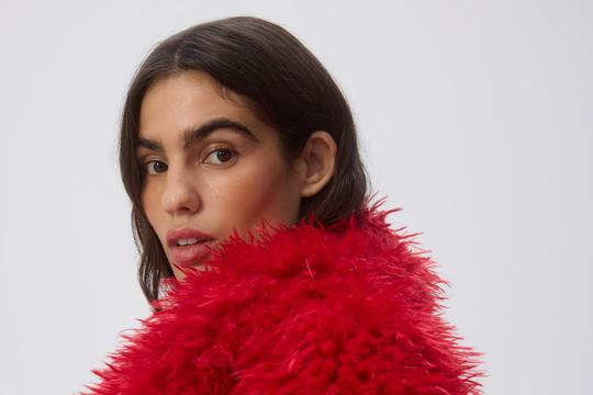 U pitanju je voluminozna bunda od umjetnog krzna. Dužinom seže do polovice bedara, ravnog je kroja, ali se može strukirati tankim remenom koji dolazi uz nju. Ono što ju ipak najviše izdvaja od svih drugih bundi je njena jarko crvena boja koja ju čini pravim statement komadom. Baš zato što je ova Reserved bunda statement komad koji privlači puno pažnje, ne treba joj dodavati puno - u svakodnevnim kombinacijama ju možemo nositi uz traperice, pripijeni džemper i gležnjače, a u svečanijim prigodama uz hlače na crtu ili slip suknje i bluze, haljine te čizmice na petu ili salonke. Ova nijansa crvene najbolje će se slagati sa crnom i bež nijansama, ali jako će dobro izgledati i u monokromatskom outfitu koji čine komadi u istoj nijansi.