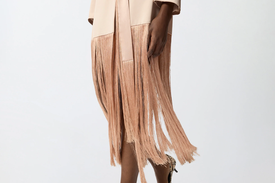 - Pronašli smo zanimljiv model s resicama, koji je izrađen od satena i dolazi u ružičastoj boji s odsjajem