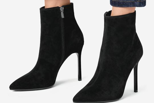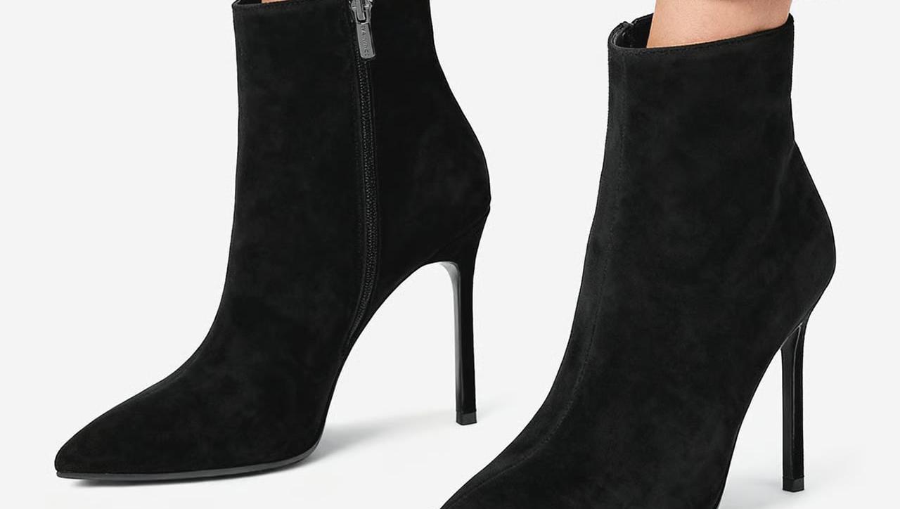 U pitanju su klasične i sasvim jednostavne crne gležnjače u špic koje imaju tanku, ali stabilnu petu te dolaze u verziji od glatke kože te brušene kože koja ove godine probija sve rekorde popularnosti. Oba modela se kopčaju na patentni zatvarač koji se nalazi s unutarnje strane noge, a visina pete kod gležnjača od glatke kože iznosi 10 centimetara, a kod modela od brušene kože - 10,5 centimetara.
