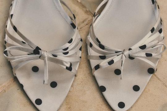 U pitanju su sasvim jednostavne natikače na petu u bijeloj boji koje su prekrivene crnim točkama. Dio iznad prstiju koji bi trebao stopalo držati na mjestu je načinjen od trakica koje su spojene u mašnu. Upravo to ih čini suptilnima i nenametljivima i kao stvorenima za sve lagane outfite u kasno proljeće i ljeto. Već smo ih zamislili u kombinaciji s kapricama i točkastim topom, trapericama i bluzom, s lepršavom midi haljinom...