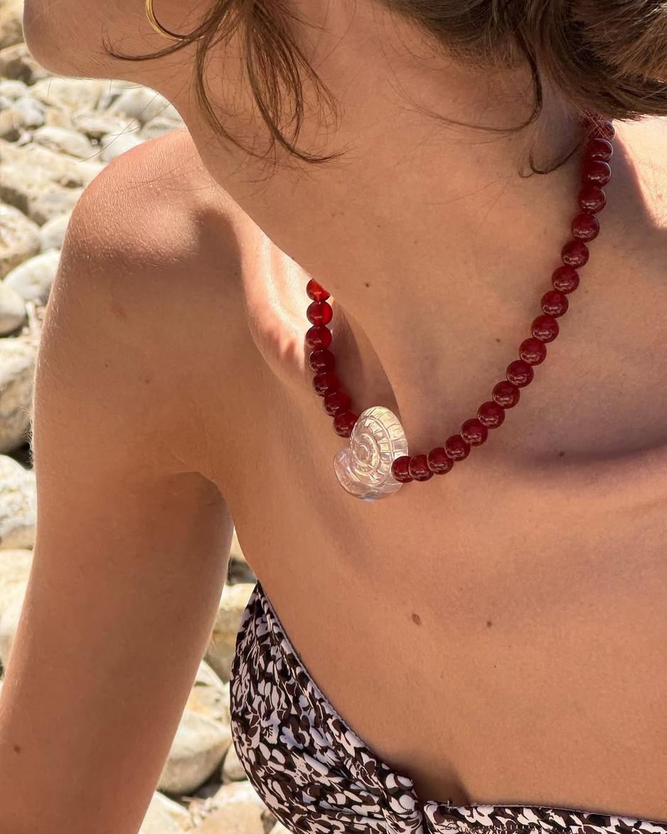 Nakit sa školjkama koji dominira ovog ljeta daleko je sličnih ogrlica kakve smo nosili devedesetih. Današnja interpretacija je profinjena, elegantna i nosiva u svim prilikama, a zahvaljujući modnim kućama poput Chloé, čije su pozlaćene naušnice u obliku školjki postale predmet žudnje, ovaj je trend prerastao okvire 'sirena' estetike i postao sinonim za chic boho stil.