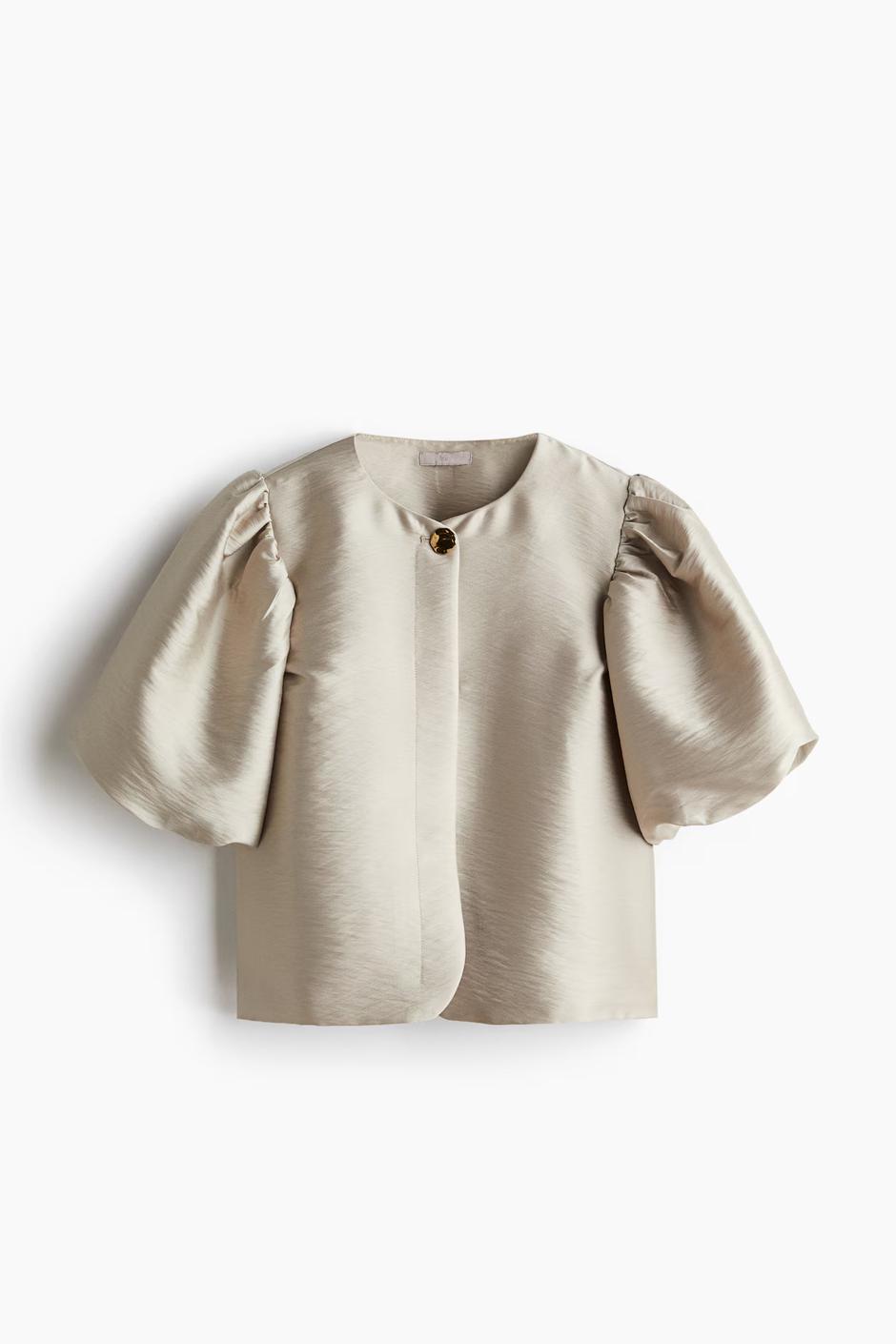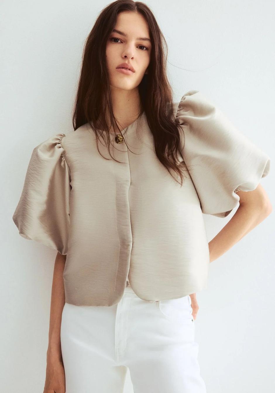Iz pariškog studija? Ne, ova elegantna bluza je iz H&M-a. Njena elegantno svjetlucava tkanina, skulpturalni balon rukavi i skriveno kopčanje s jednim ukrasnim gumbom zlatne boje stvaraju estetiku koja je istovremeno bezvremenska i ekstravagantna. Ova bluza izgleda osobito šik u kombinaciji s trapericama ili lepršavim hlačama - moderno, sofisticirano i elegantno. Njena cijena iznosi 49,99 eura.