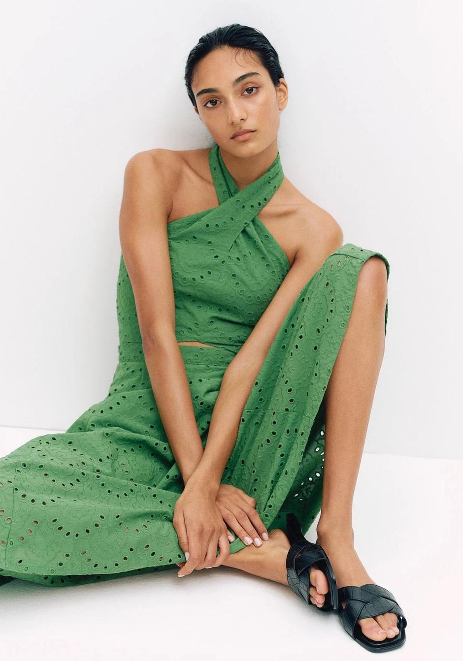 Ova lepršava haljina izrađena od nježnog šifona istovremeno je minimalistička i uzbudljiva. Tanke, suptilne naramenice, široki gornji dio i blago lepršava suknja stvaraju siluetu koja podsjeća na '90-e. U nježnoj maslac žutoj – najtrendi boji ove godine, ova haljina savršeno utjelovljuje ljetnu eleganciju. Njena cijena iznosi 59,99 eura.