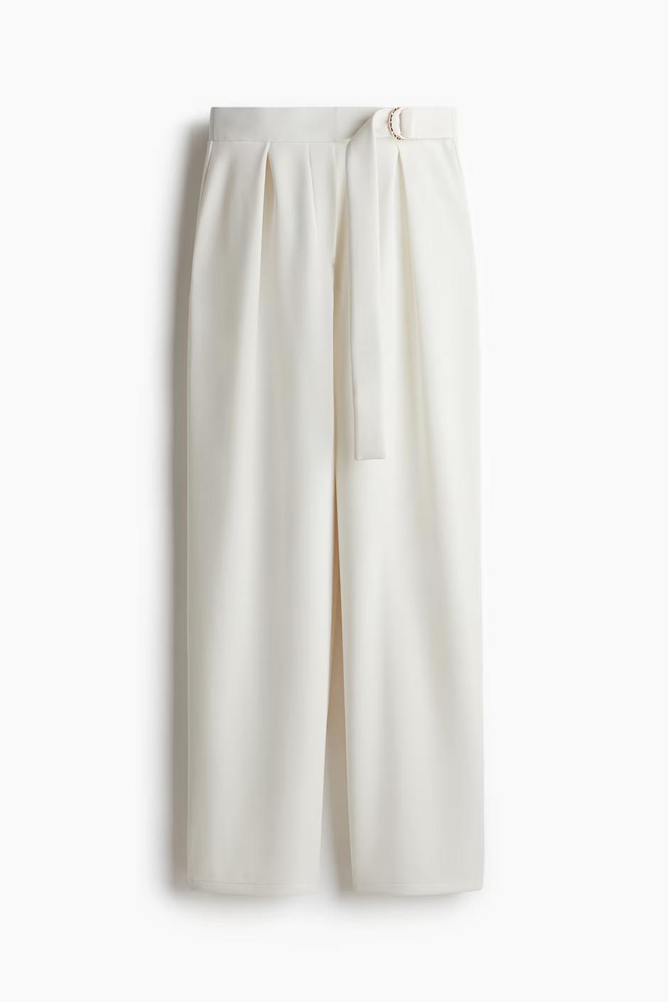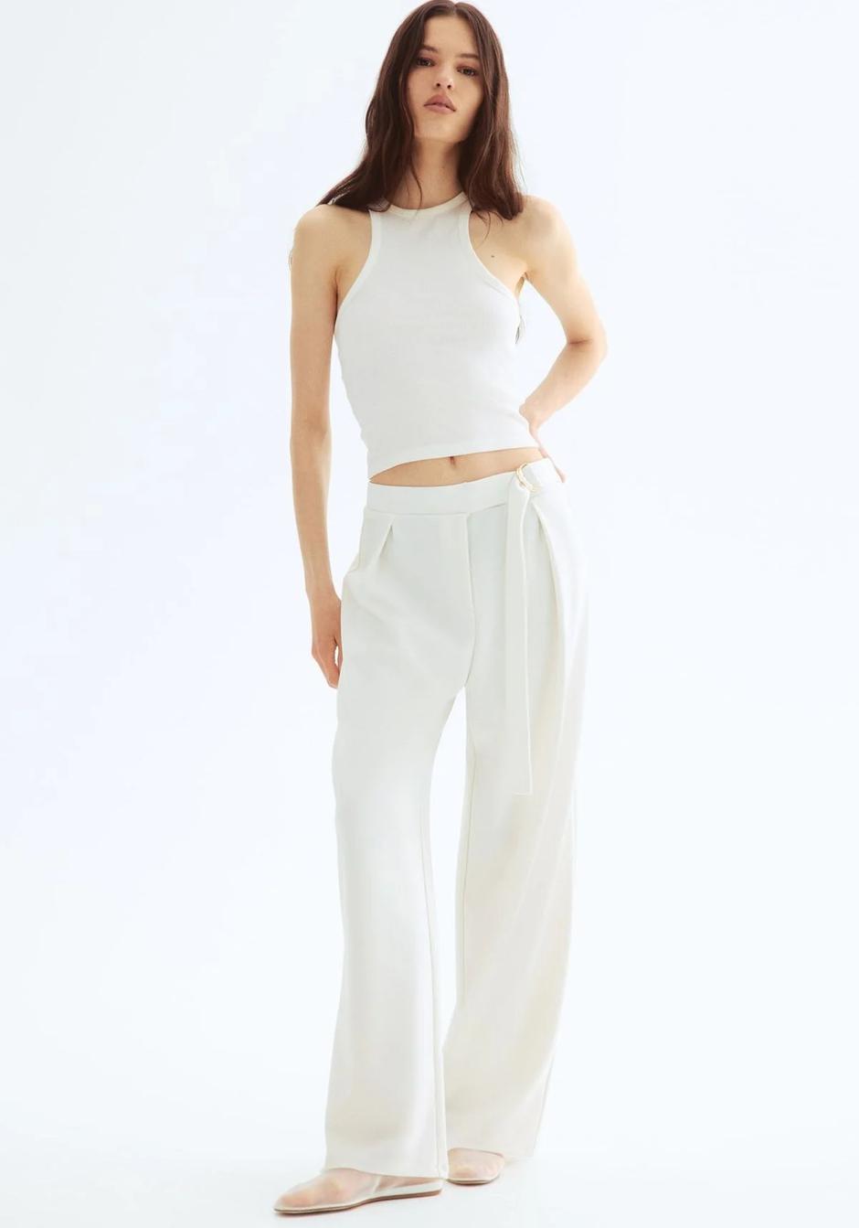 Ove široke hlače od žerseja s naborima izgledaju totalno moderno. Elegantna silueta savršena je za toplije mjesece pred nama i oplemenjuje outfit suptilnom sofisticiranošću. Integrirani remen s nježnom zlatnom kopčom podsjeća na luksuzne dizajnerske detalje i ove hlače čini vrhuncem svake ljetne garderobe – bilo u klasičnoj crnoj ili krem bijeloj boji. Cijena im iznosi 19,99 eura.